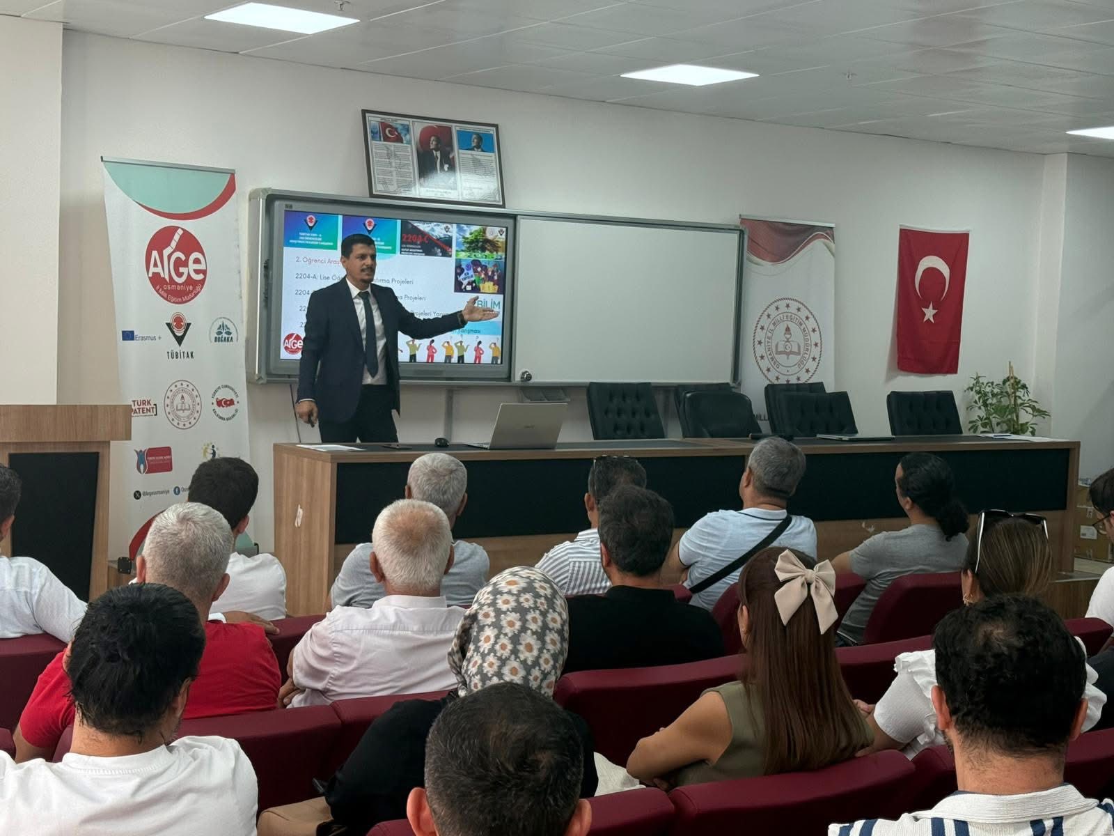 Osmaniye il Milli Eğitim Müdürlüğü Ar-Ge Birimi proje koordinatörleri Nail Dayanç ve Mehmet Karip tarafından bilgilendirmeler yapıldı.